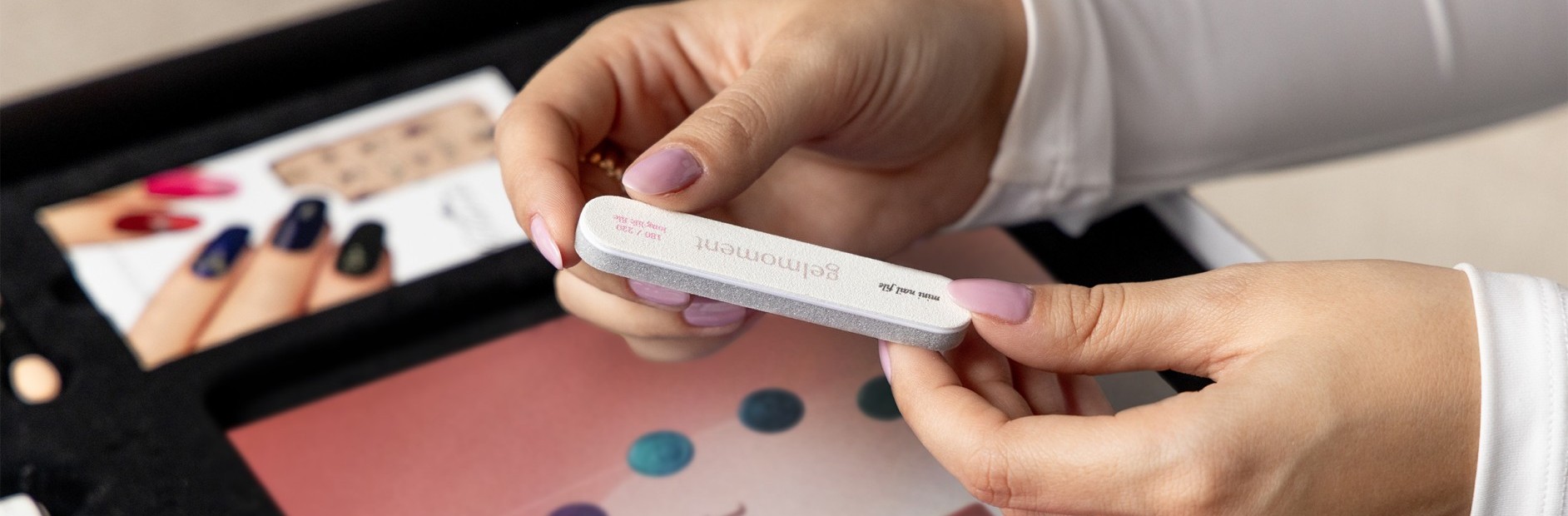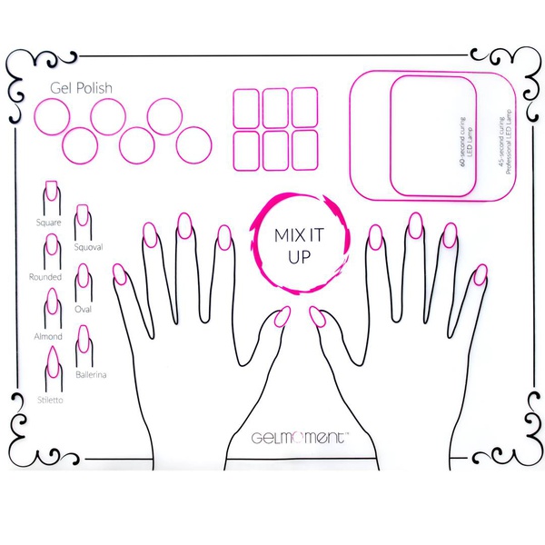 • Features helpful graphics of different nail shapes as well as suggestions of where to place your hands and gelmoment products.