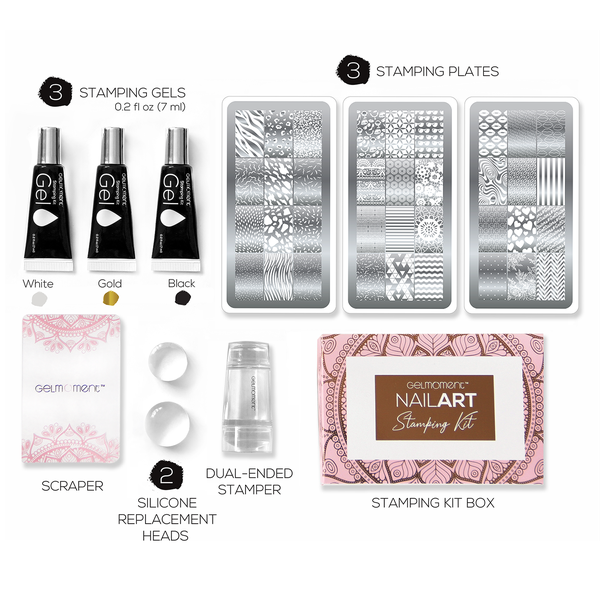 • 3 stamping gel colours (gold, black, & white)